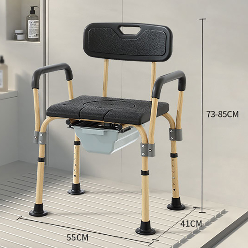 The CCB5104 Bath & Commode Chair is a multifunctional solution designed for elderly care, rehabilitation, and home healthcare. With its aluminum alloy frame featuring a premium wood-grain finish, this chair combines rust resistance, lightweight strength, and a home-style appearance that blends seamlessly into living spaces.