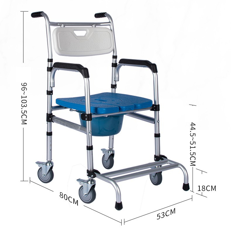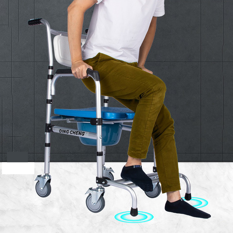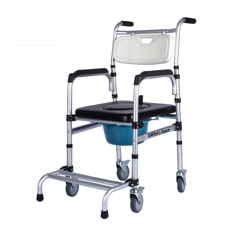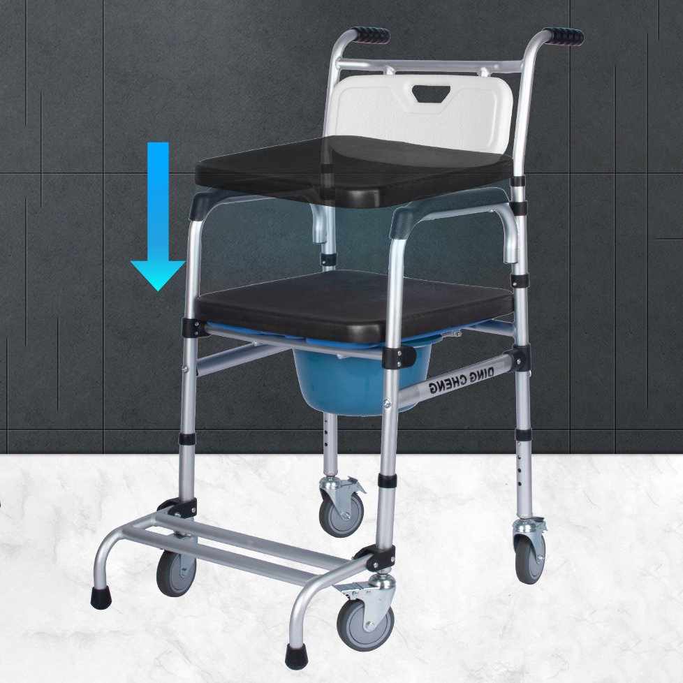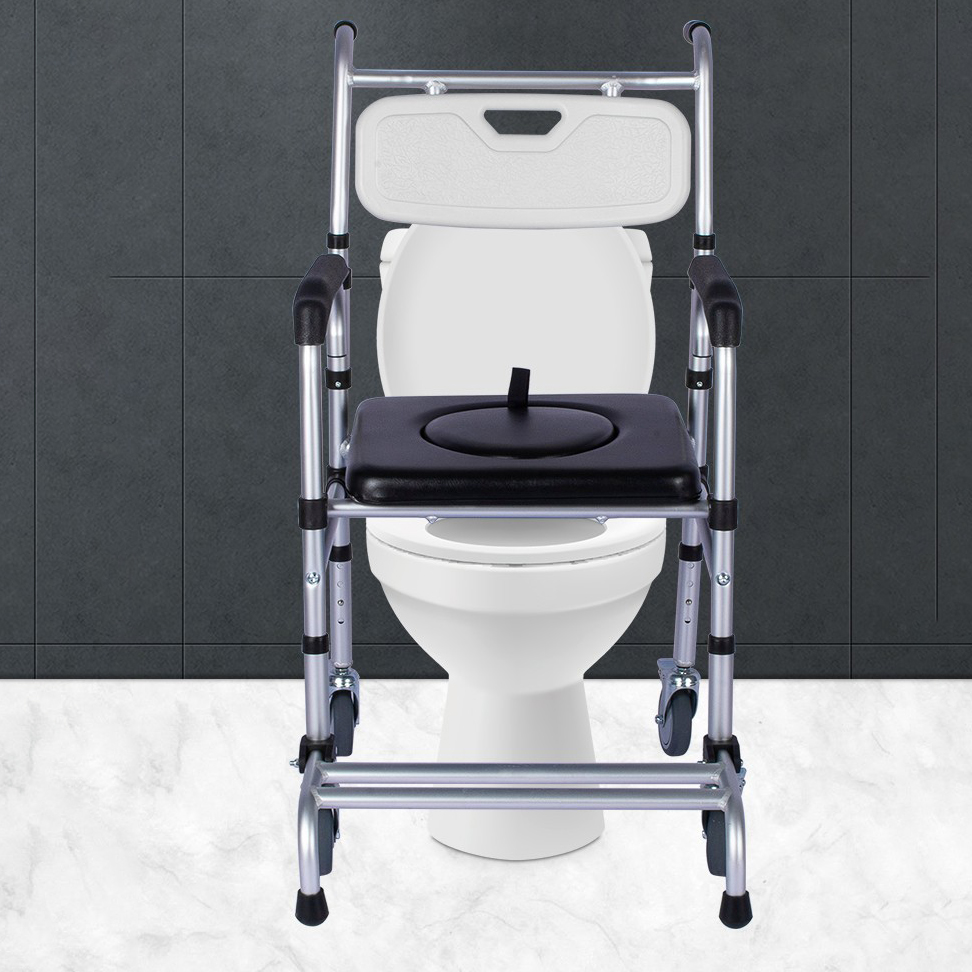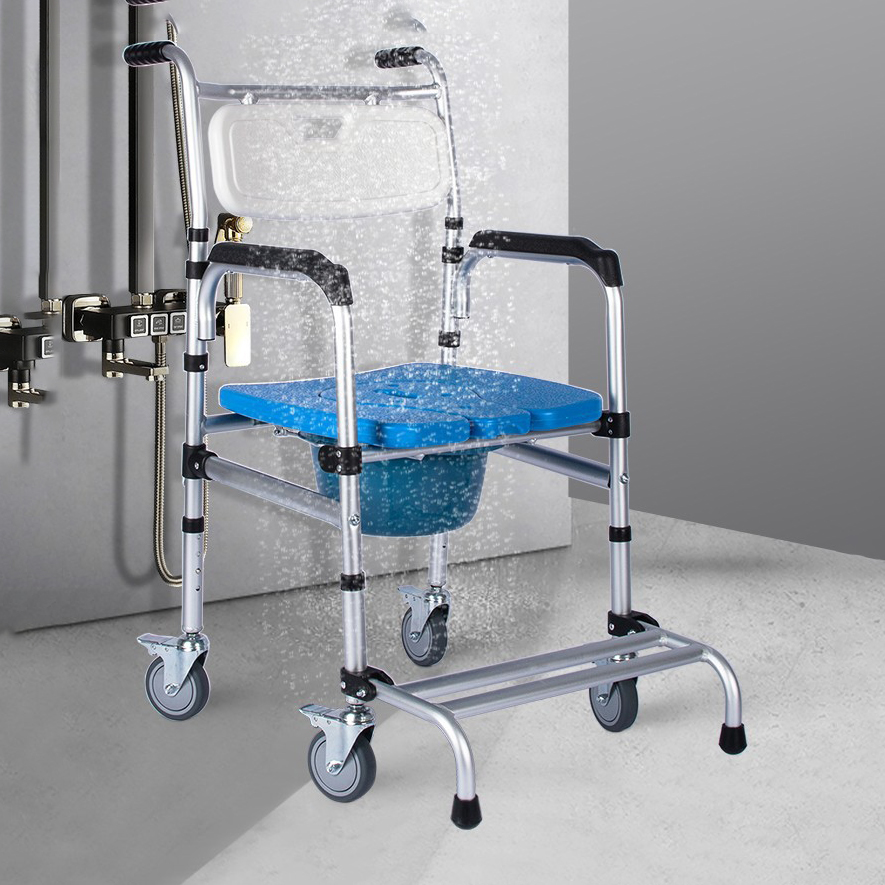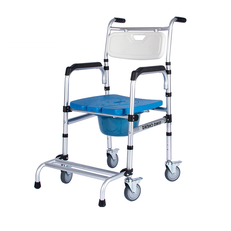 The CCB6022 is a multifunctional commode and shower chair designed for seniors, pregnant women, post-surgery patients, and individuals with mobility issues. This 4-wheel chair provides a practical, lightweight solution for both toileting and bathing needs. With a high-strength aluminium alloy frame and an adjustable height feature, it offers enhanced safety, comfort, and convenience.