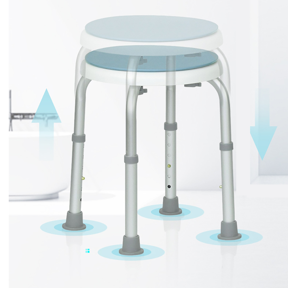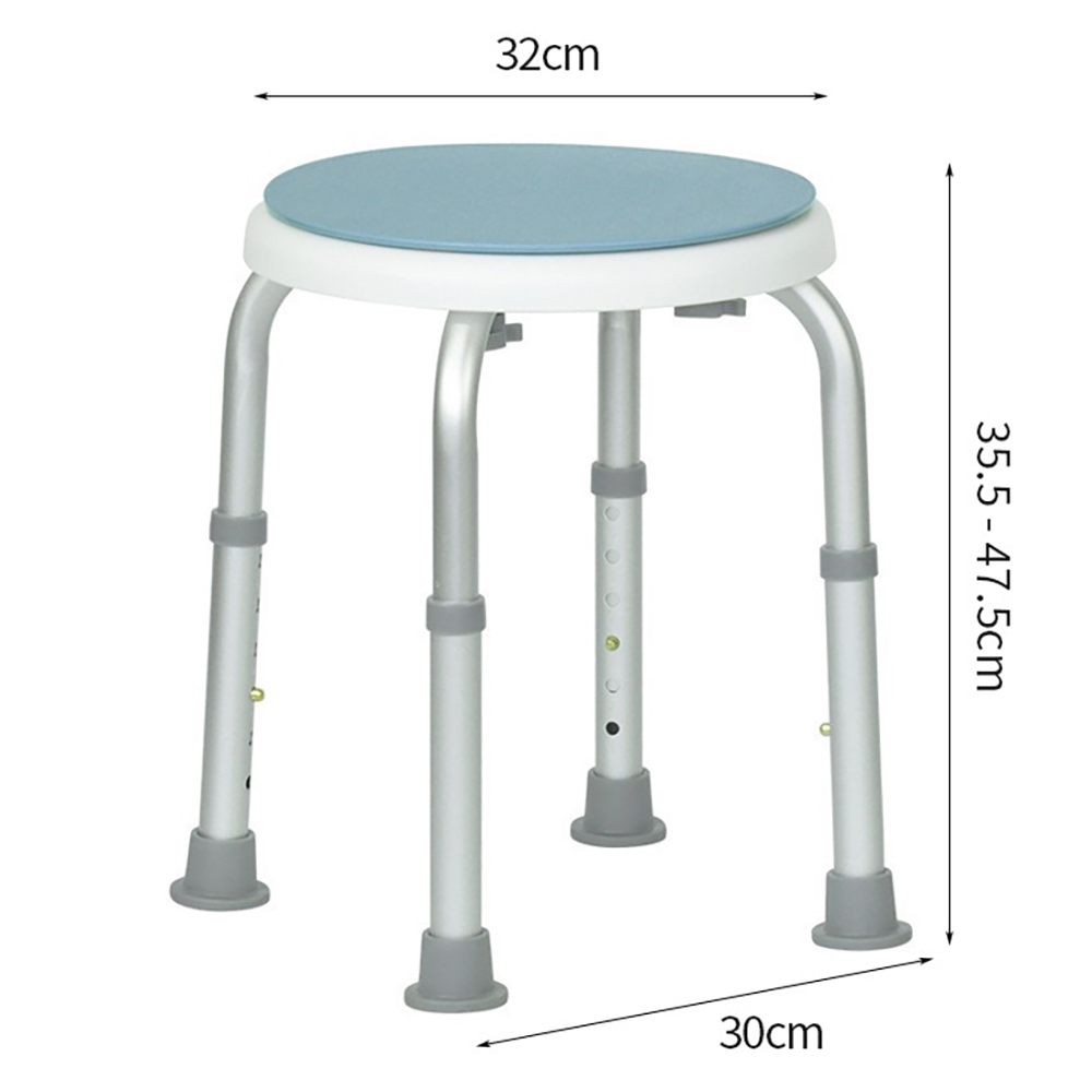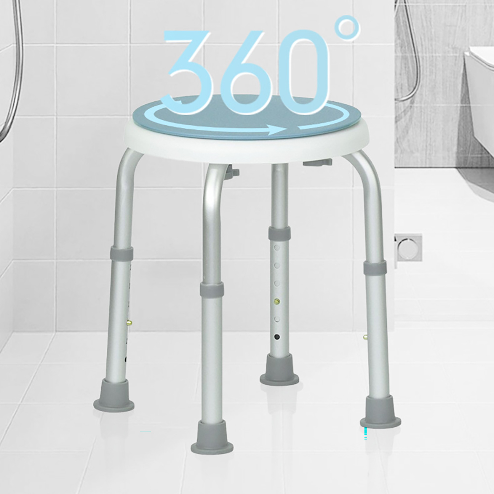 The SC02 Rotating Shower Stool is a lightweight yet sturdy bathroom aid designed to improve safety and convenience for seniors, patients, and individuals with limited mobility. Built with a rust-resistant aluminum frame and a 360° rotating seat, it allows for easier movement and transfer in the shower. With 6 adjustable height levels (35.5–48.5 cm), the stool is adaptable to different users’ needs.